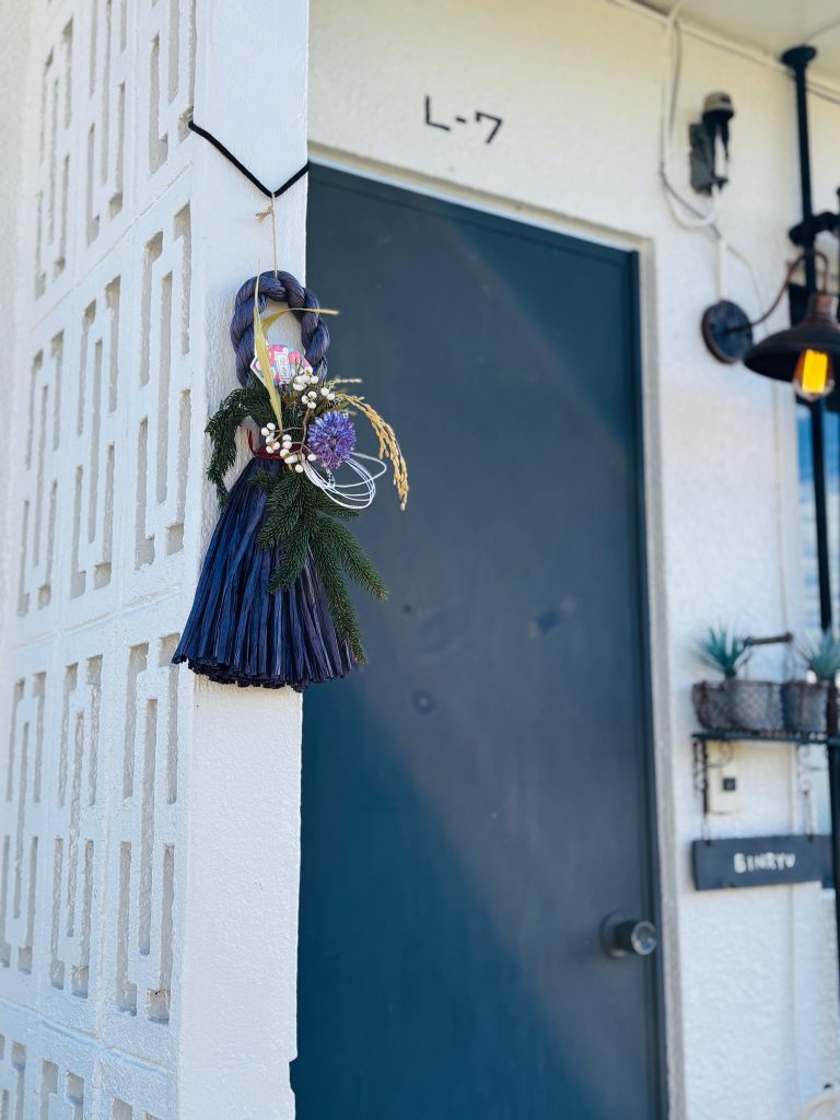 掃除をして綺麗になった玄関に正月花を飾り完了。