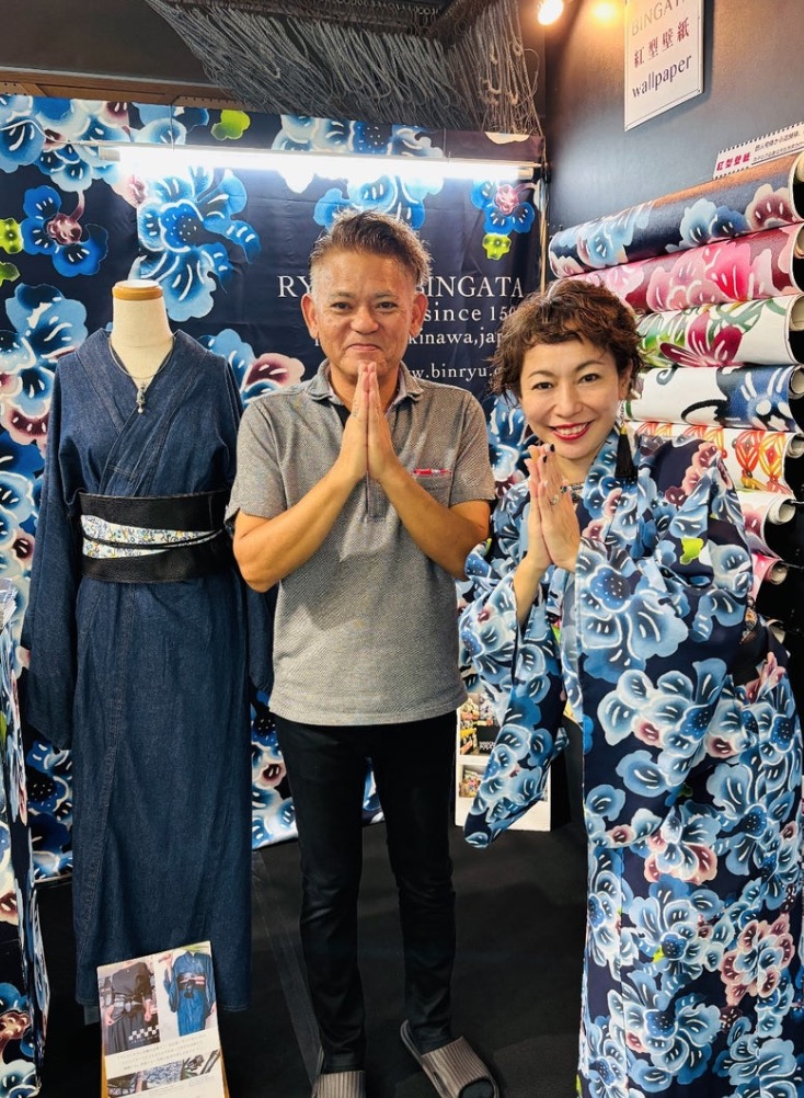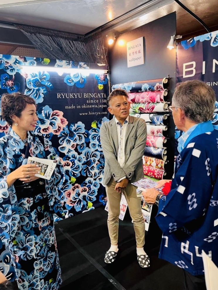 話し盛り上がったのですが、、、 メイン展示の「紅型壁紙」のこと・・・